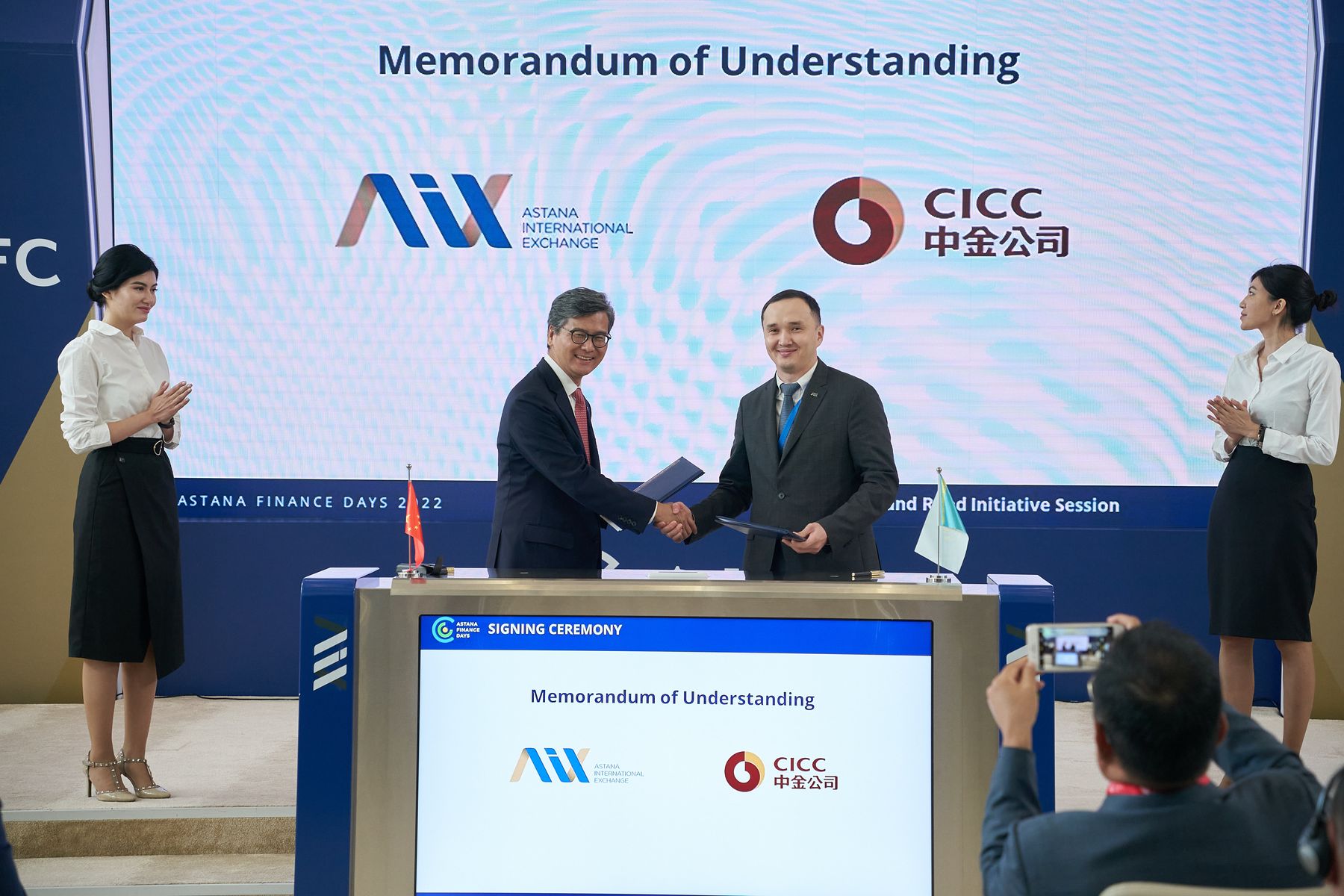 Mr. Barry Chan, Managing Director, Head of Investment Banking HK and Head of Asia-Australia Region signed the Memorandum of Understanding on behalf of CICC in Nur-sultan, Kazakhstan with Mr. Zharas Mussabekov, Chief Financial Officer with AIX.